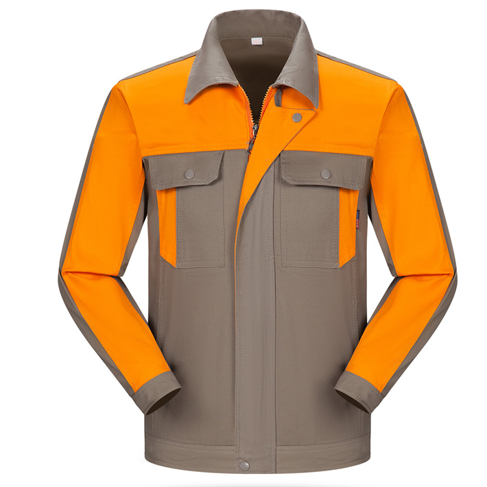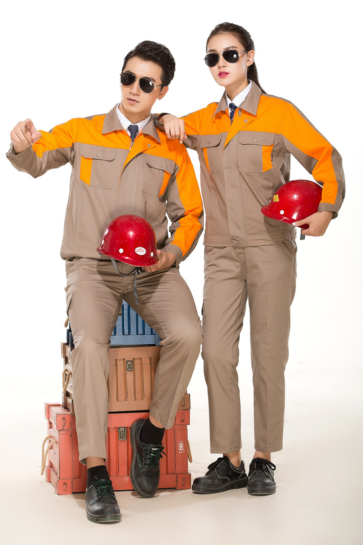 淮南全棉工作服定做款式灰色拼桔黃色長袖套裝GZ-8017