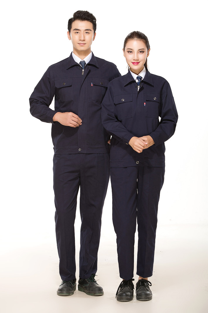 壽縣工作服定做廠家定制工服款式全棉藏青色工作服長裝GZ-8021