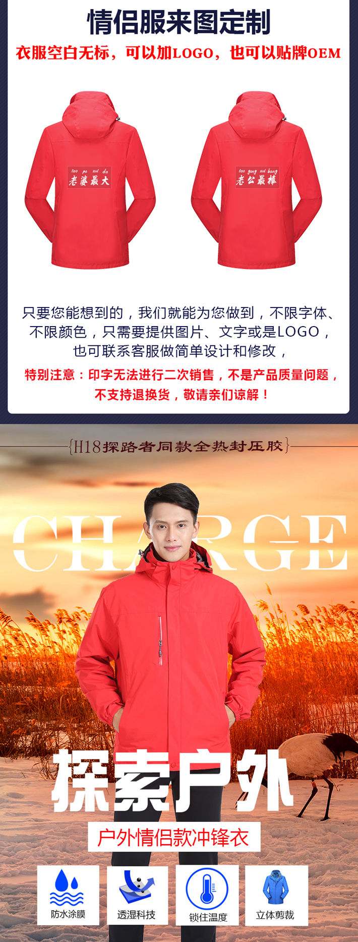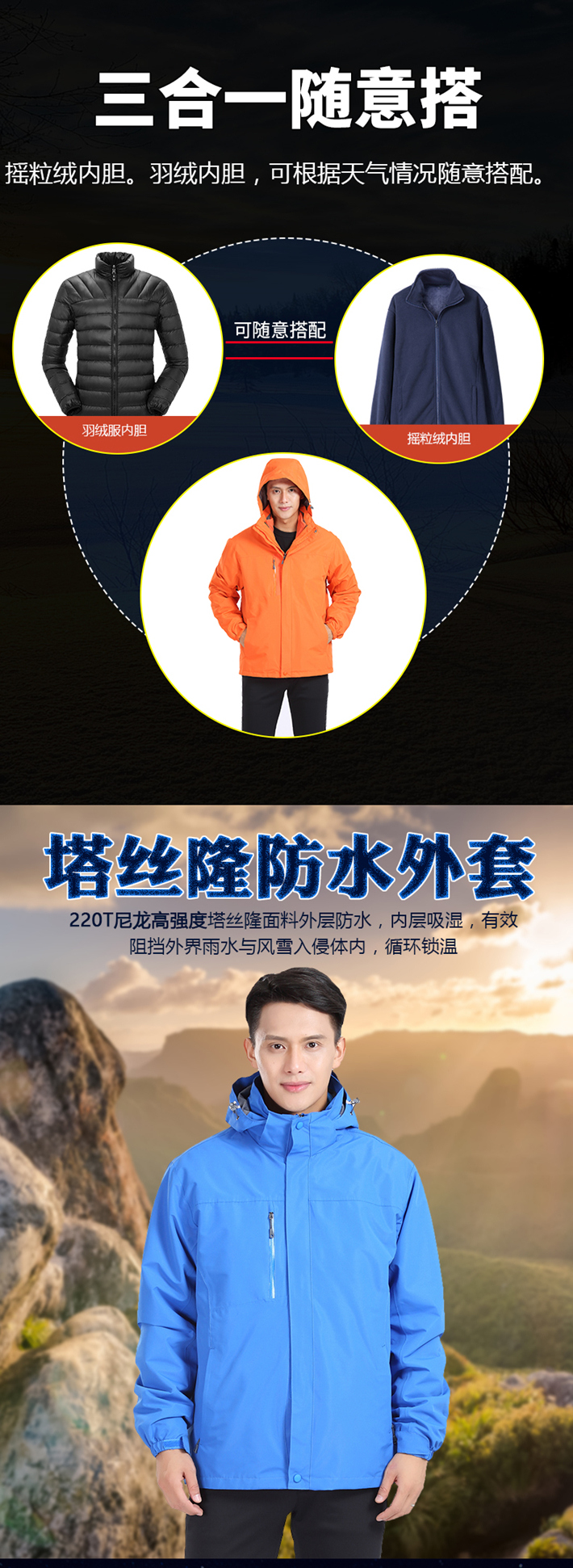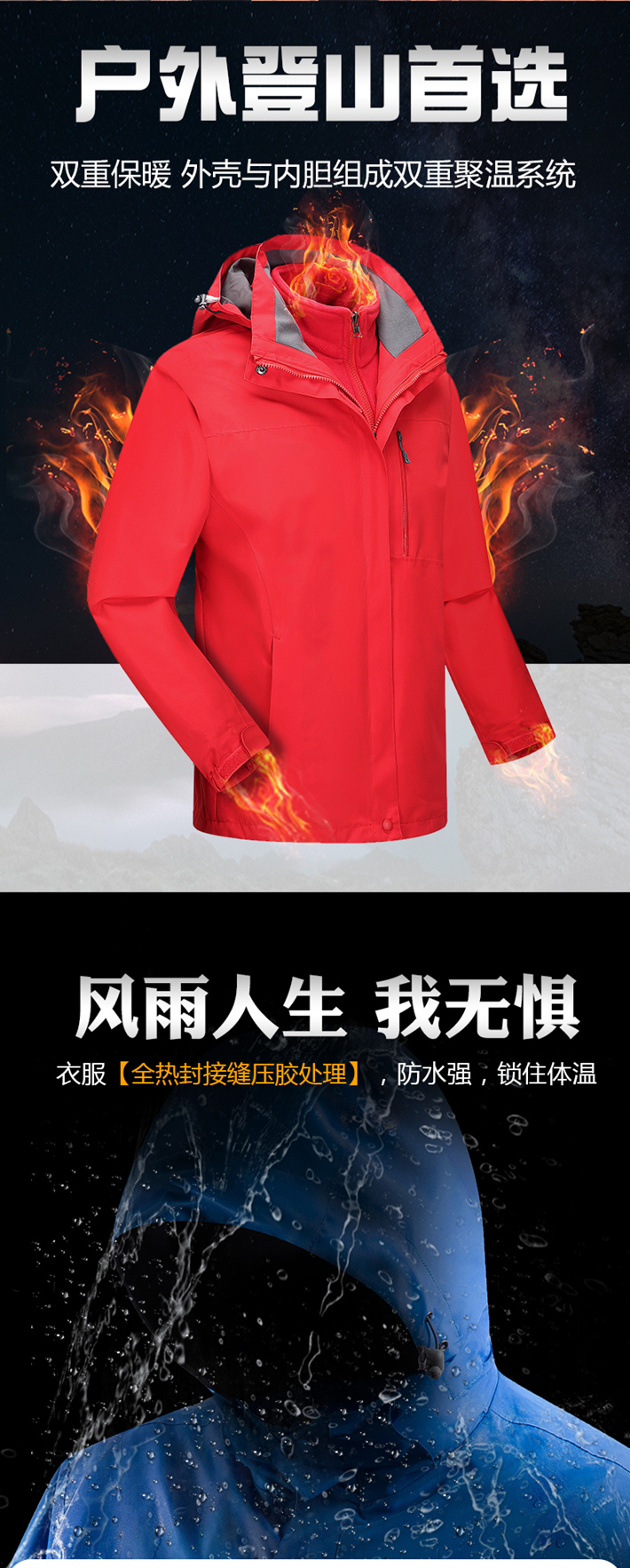 生產工藝:采用拉鏈壓膠防水工衣,可拆卸內膽、袖口松緊魔術貼