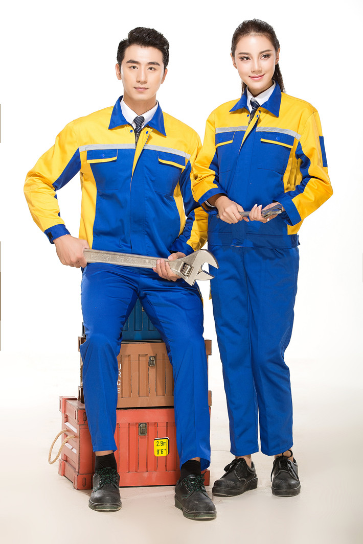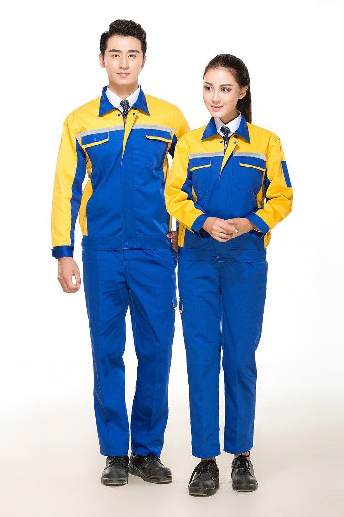 滌棉藍色拼黃色反光條工作服長袖套裝GZ-8014