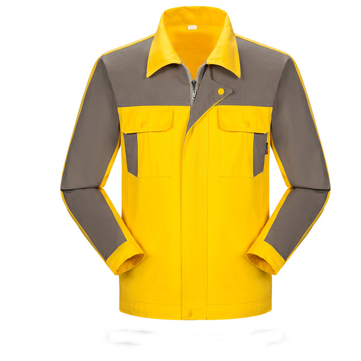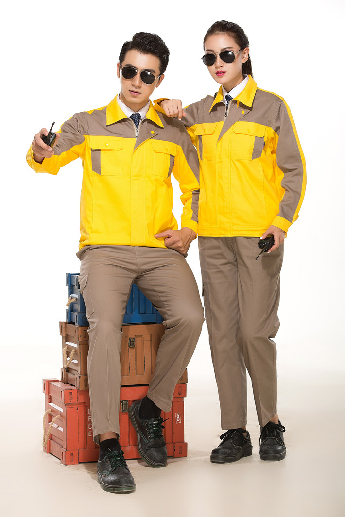 全棉紗卡黃色拼灰色拉鏈式工作服長袖套裝GZ-8018
