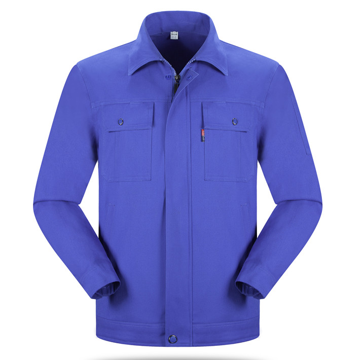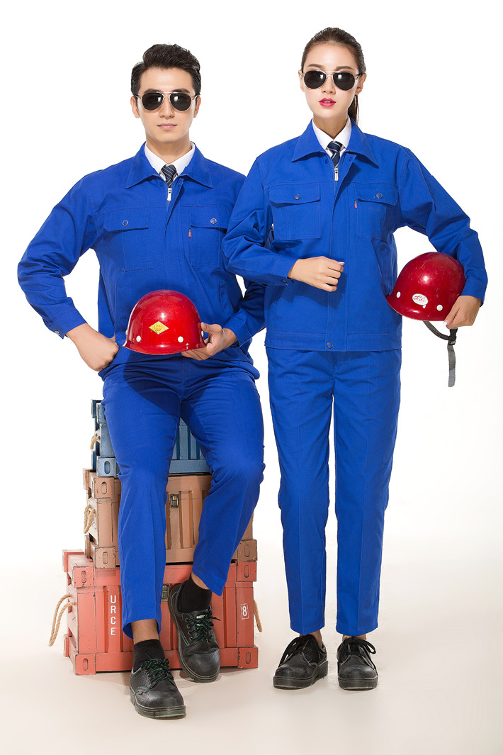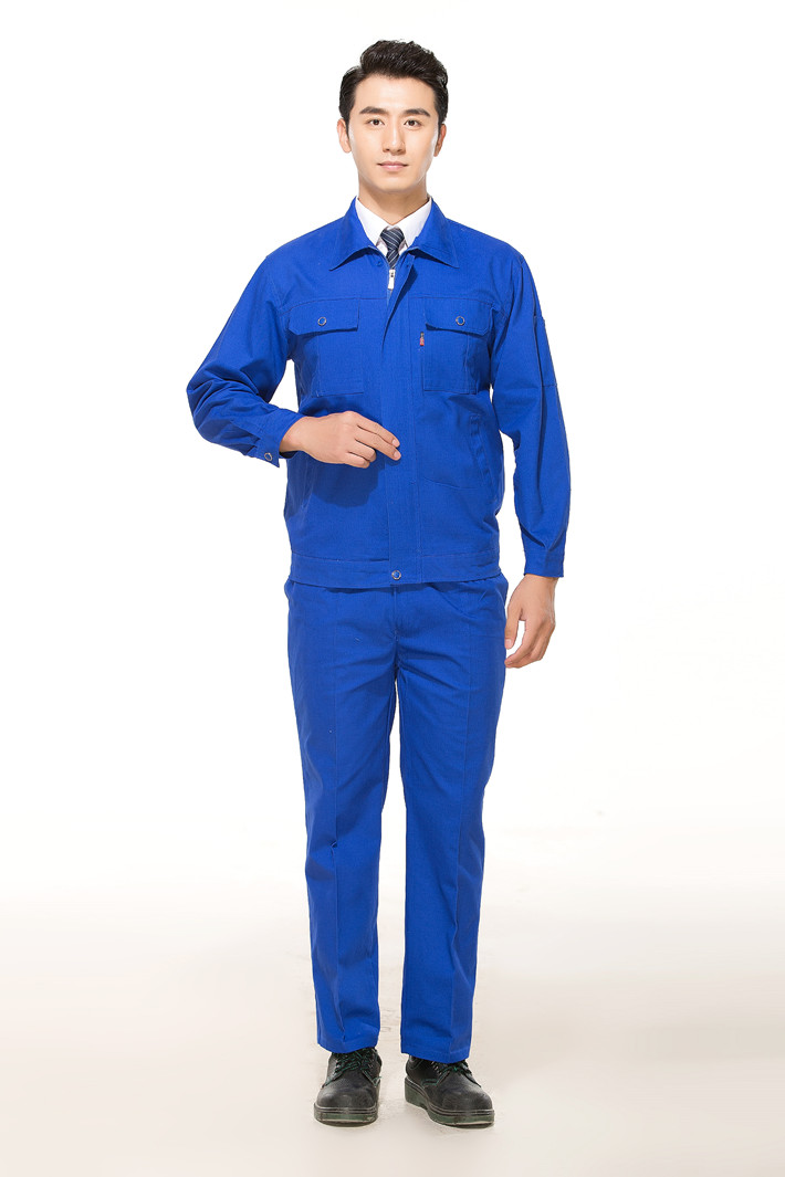 全棉紗卡藍(lán)色拉鏈?zhǔn)焦ぷ鞣L(zhǎng)袖套裝GZ-8020