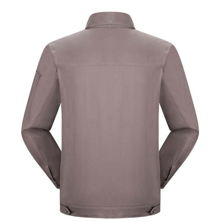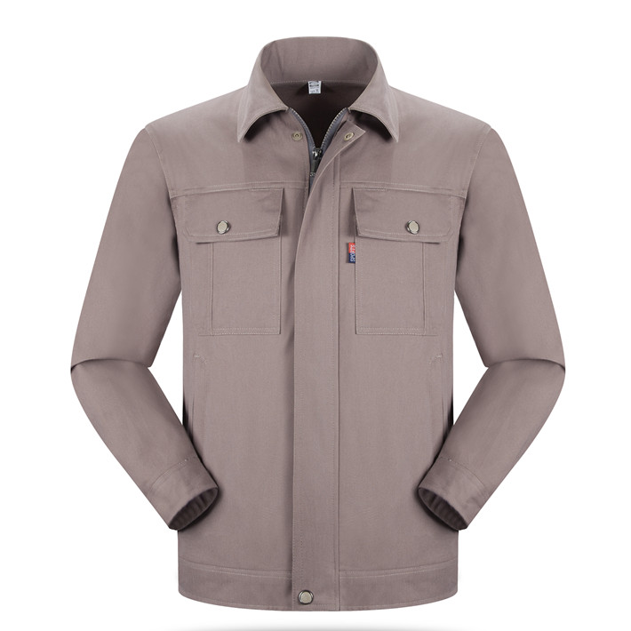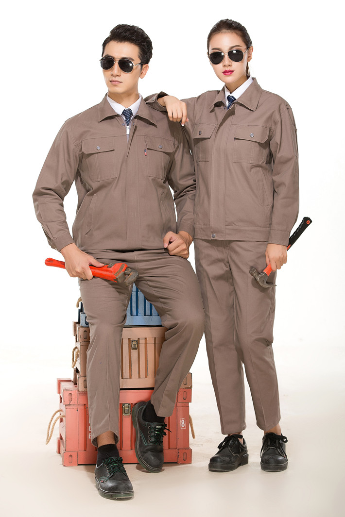全棉紗卡卡其色拉鏈?zhǔn)焦ぷ鞣L(zhǎng)袖套裝GZ-8022