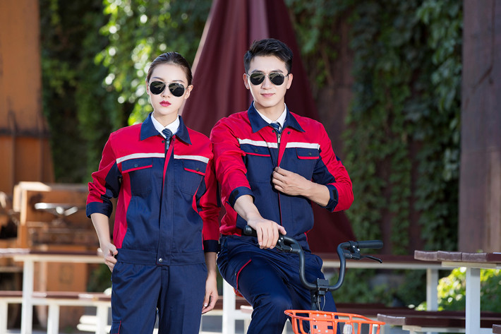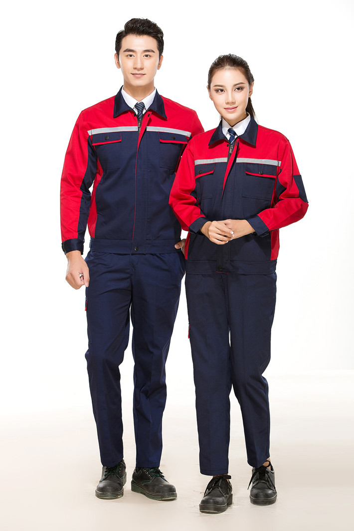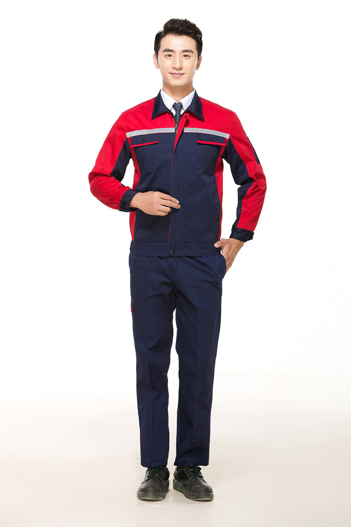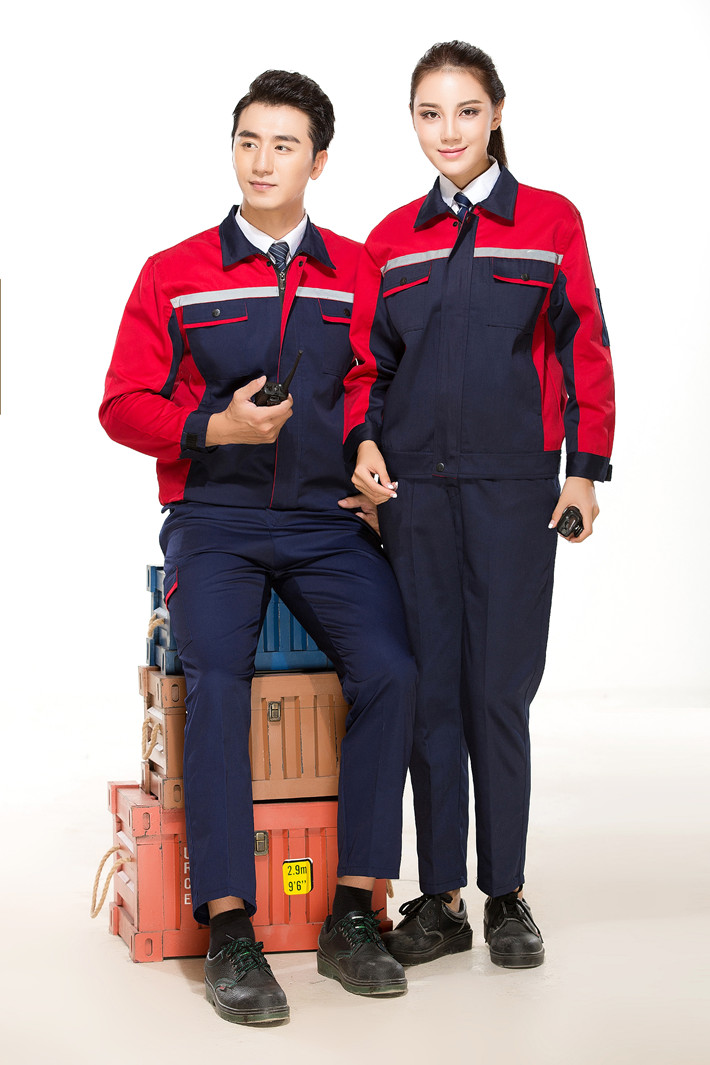 滌棉反光條藏青色拼紅色馬鞍山工作服GZ8012
