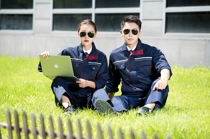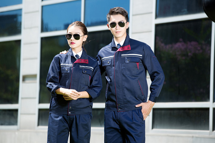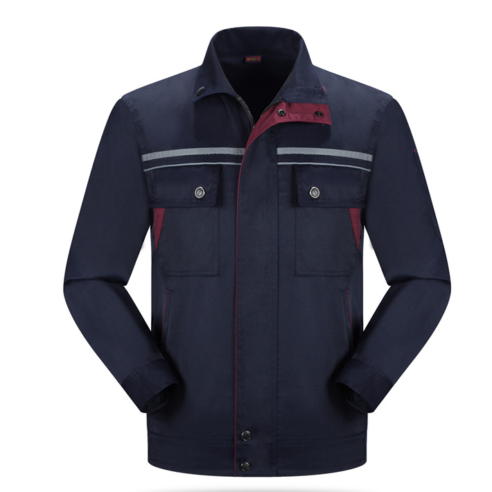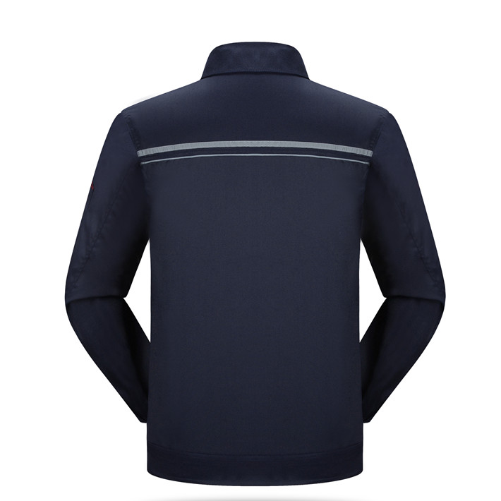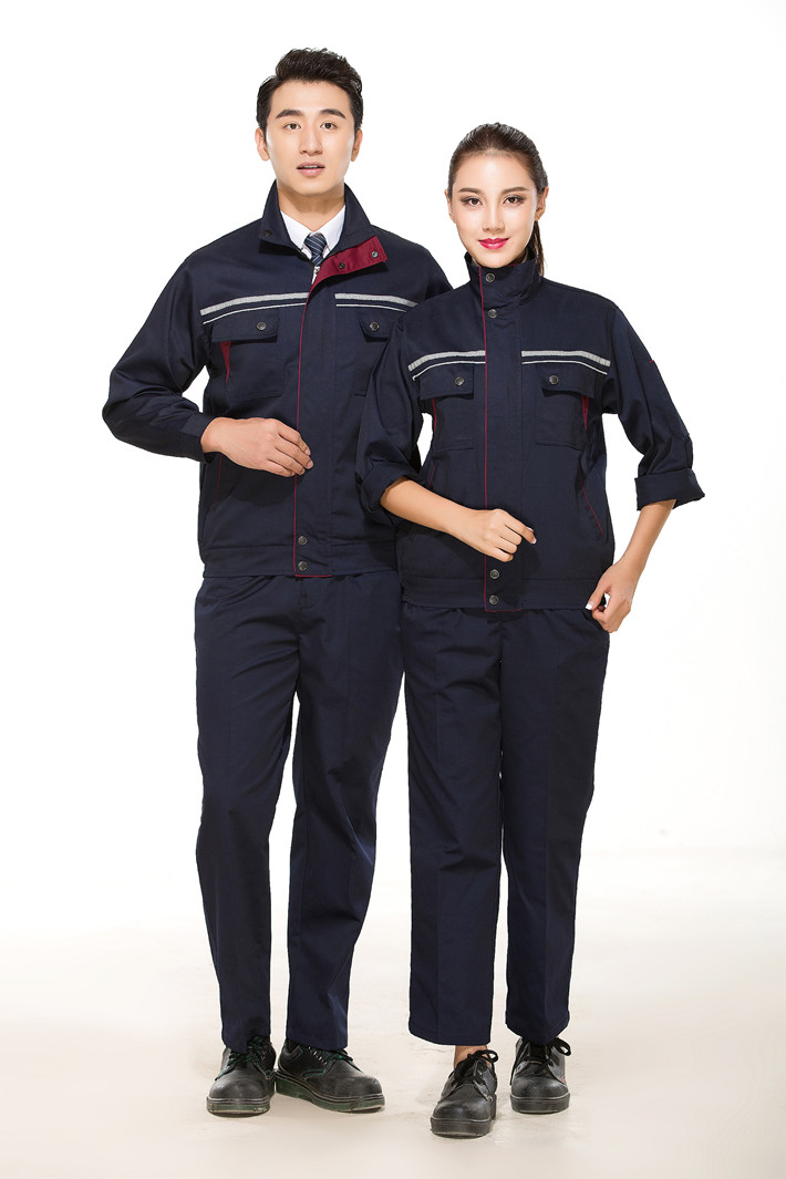 滌棉藏青色立領(lǐng)拼色拉鏈?zhǔn)椒垂鈼l工作服長袖套裝GZ-8026