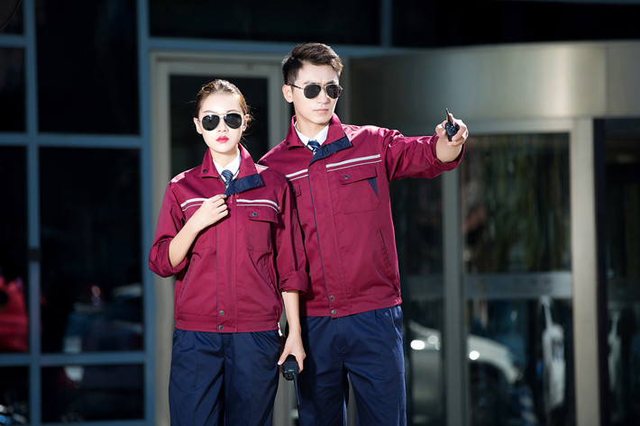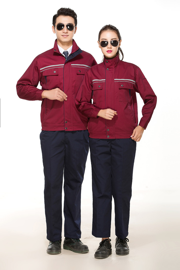 滌棉棗紅色立領拼色拉鏈式反光條工作服長袖套裝GZ-8028