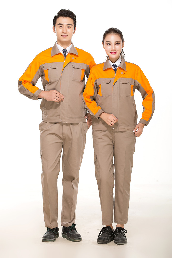 全棉紗卡灰色拼桔黃色拉鏈式工作服長袖套裝GZ-QM8017