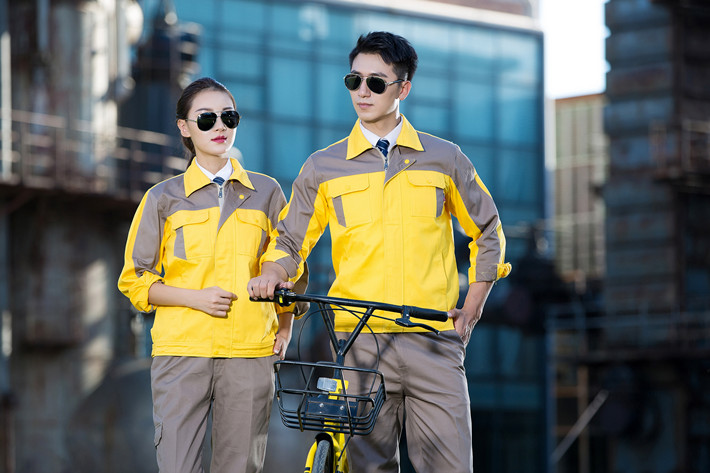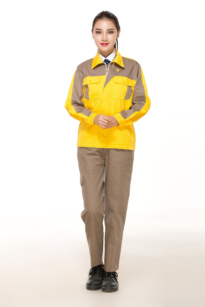 全棉紗卡黃色拼灰色拉鏈式工作服長袖套裝GZ-QM8018