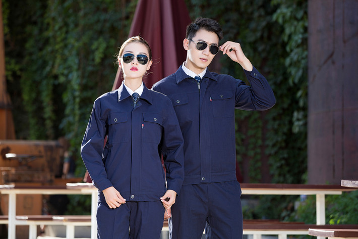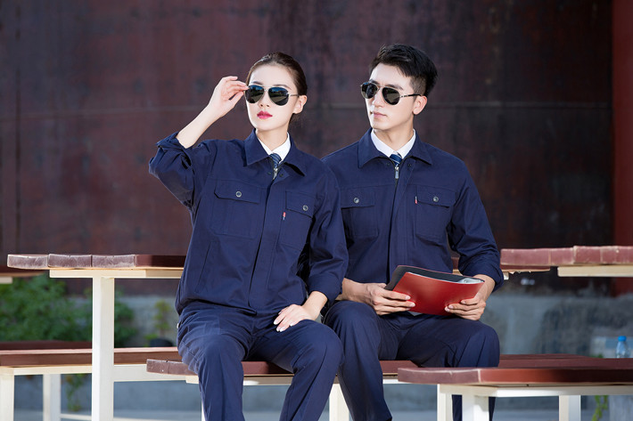 全棉紗卡藏青色拉鏈式工作服長袖套裝GZ-QM8021