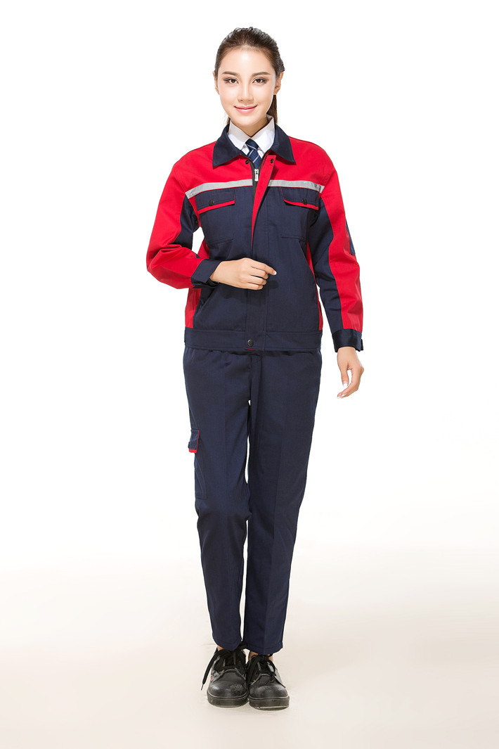 滌棉藏青色色拼紅色工作服套裝GZ-DM8012