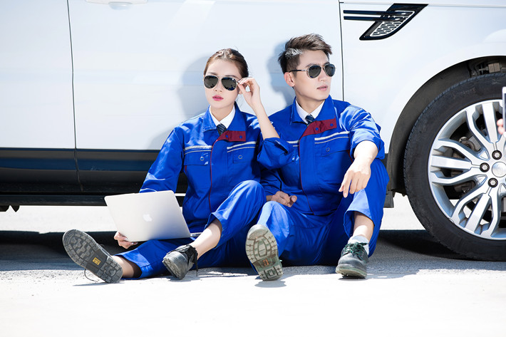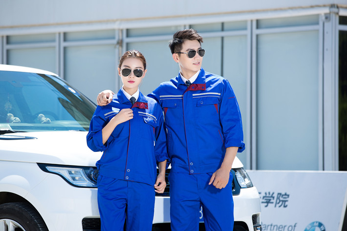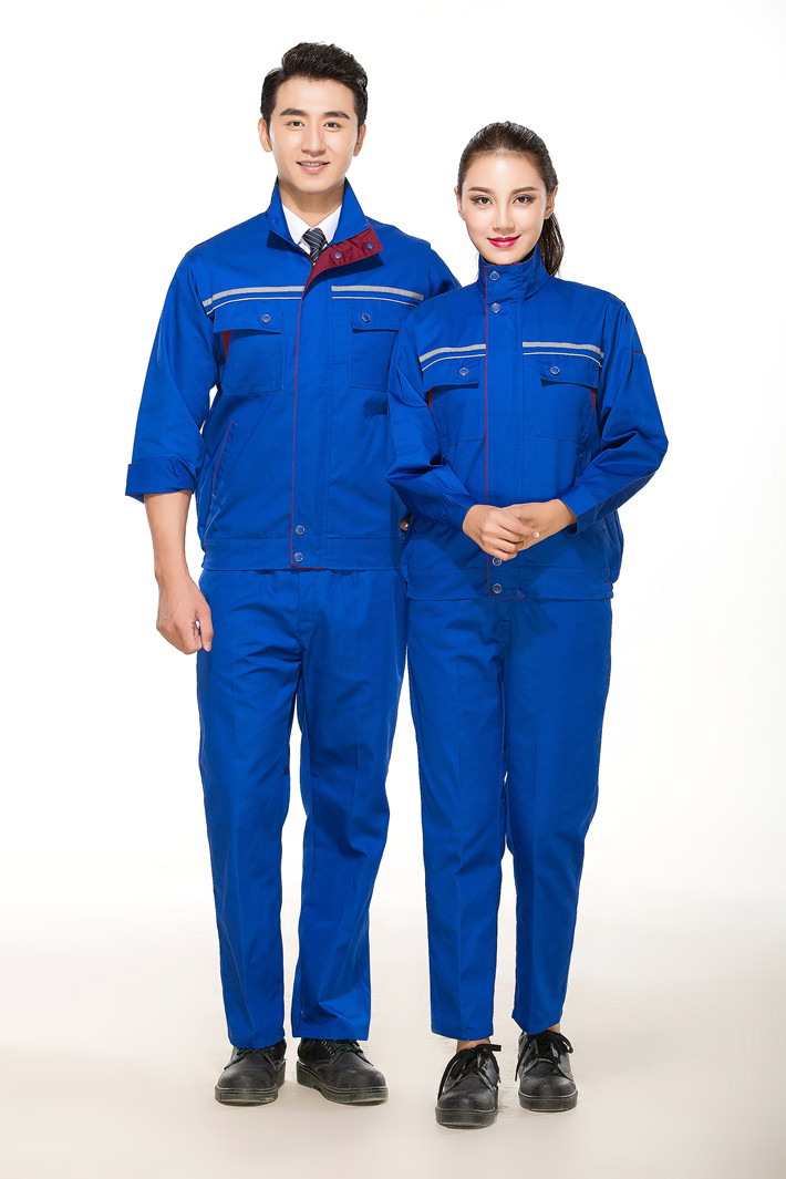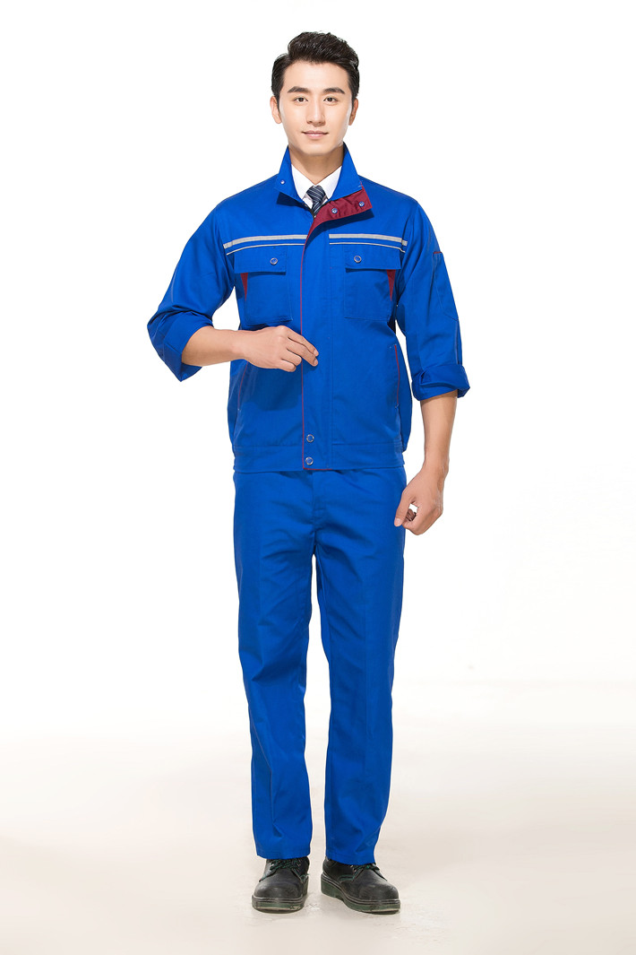 滌棉寶藍色立領拼色拉鏈式反光條工作服長袖套裝GZ-FGT8025