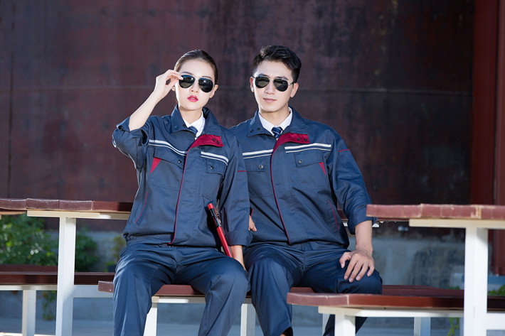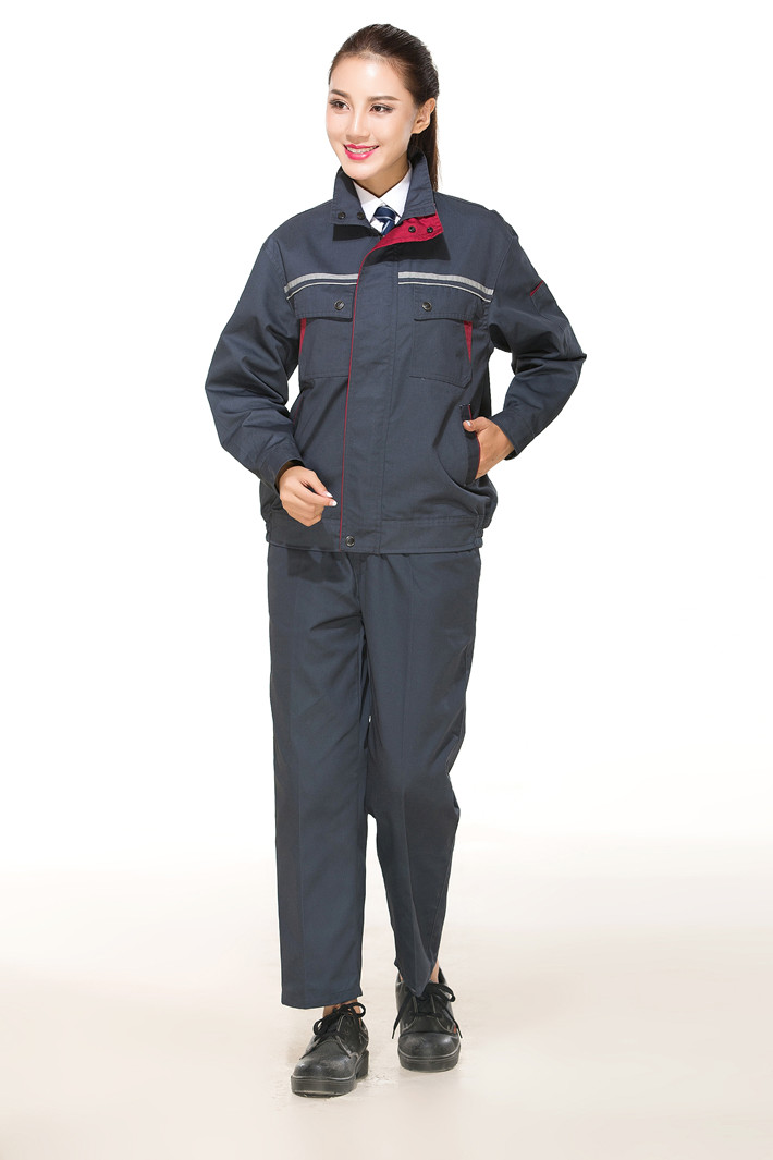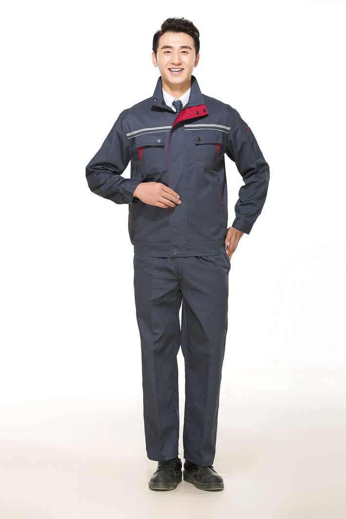 滌棉深灰色立領拼色拉鏈式反光條工作服長袖套裝GZ-FGT8029