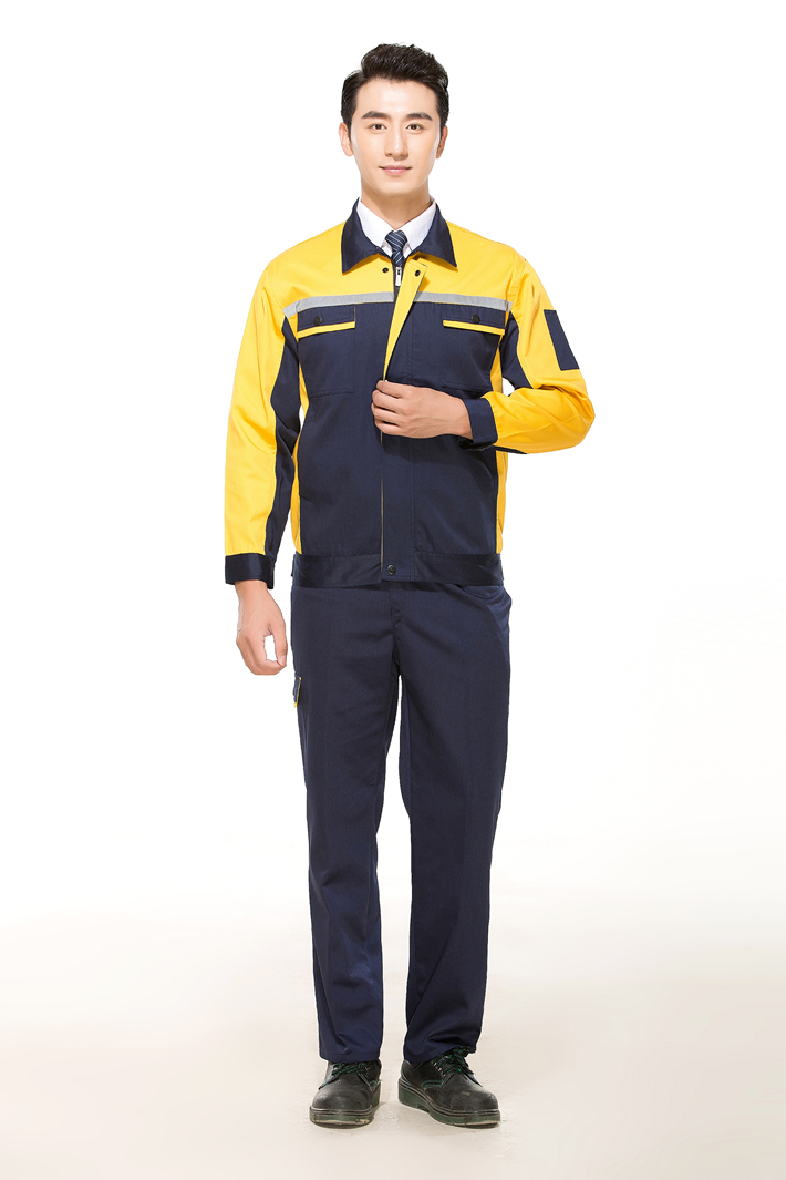 合肥工作服定做款式藏青色拼黃色長袖工作服套裝GZ-8015